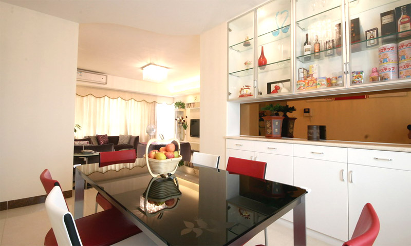 | 案例說明 | 本案重在綈造一個(gè)溫馨舒適的家,盡量利用空間,簡(jiǎn)潔的色彩搭配來突出主題。主人喜歡白色簡(jiǎn)約風(fēng)格,所以一切重點(diǎn)用軟裝材質(zhì)來點(diǎn)綴,空間顯得靈動(dòng),暗紫色的布藝沙發(fā),紅色的掛畫,黑色的餐桌,紅白間隔的椅子,在整個(gè)象牙白里面跳躍起來,讓空間生動(dòng)舒服,這就是家的感覺,簡(jiǎn)潔而不簡(jiǎn)單。 | ||